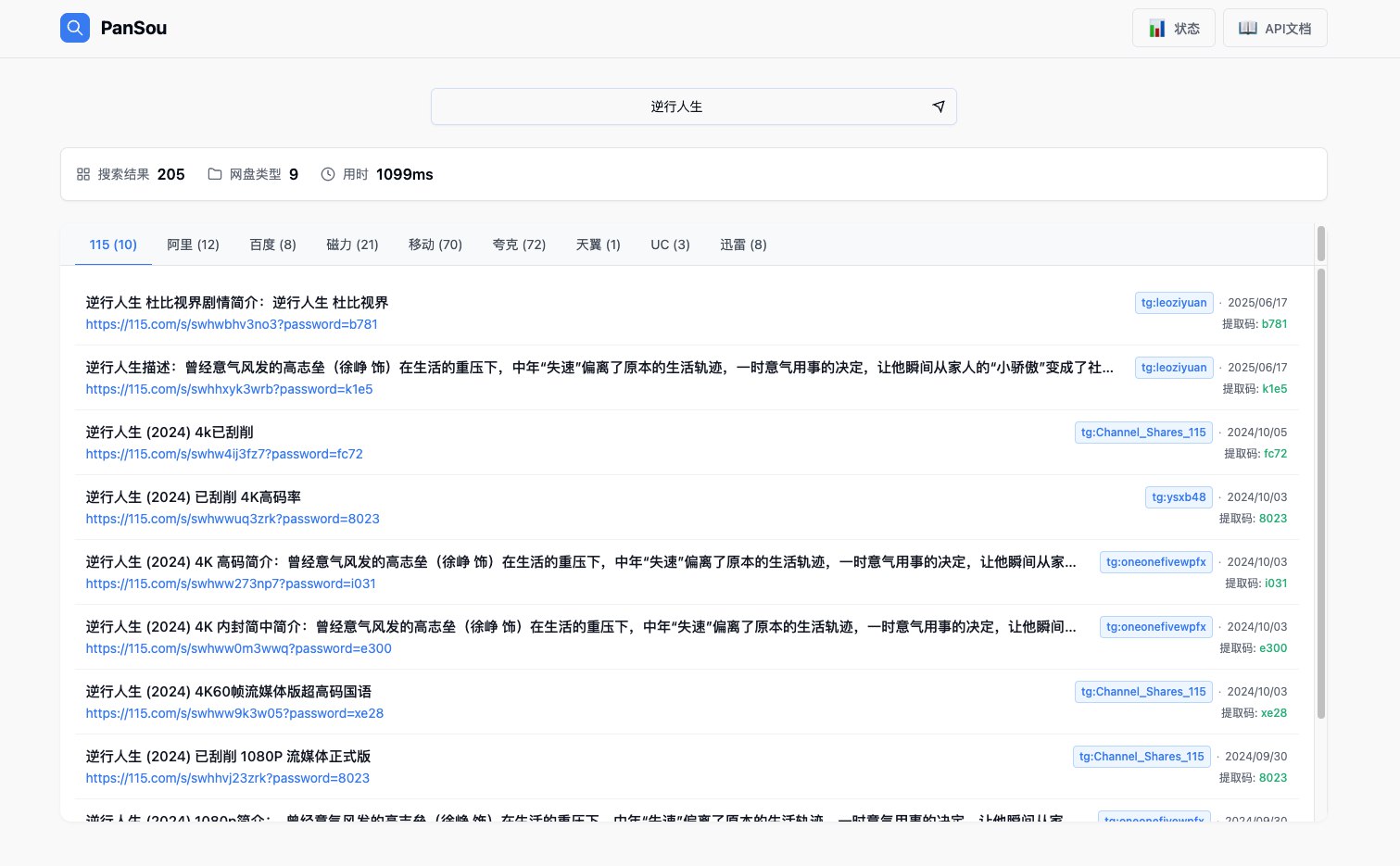 在此之前发布过一篇aipan的部署教程,现在又有个PanSou,基本玩法差不多,PanSou更强大一点,支持TG频道搜索和自定义插件搜索,支持并发搜索、结果智能排序和网盘类型分类。